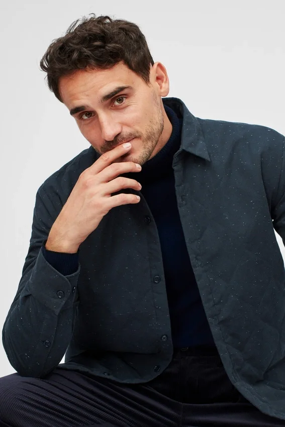 Lightweight Jacket | Quilted Exterior Donegal Fabric | Soft Contrast Grey Interior | Point Collar | Interior Chest Pocket with a Button Closure Same Fabric as Exterior