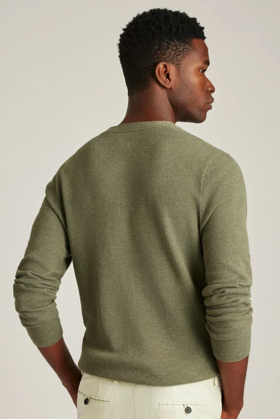Cooling Cotton Blend | Allover Texture Stitch | V-Neck with Button Closure