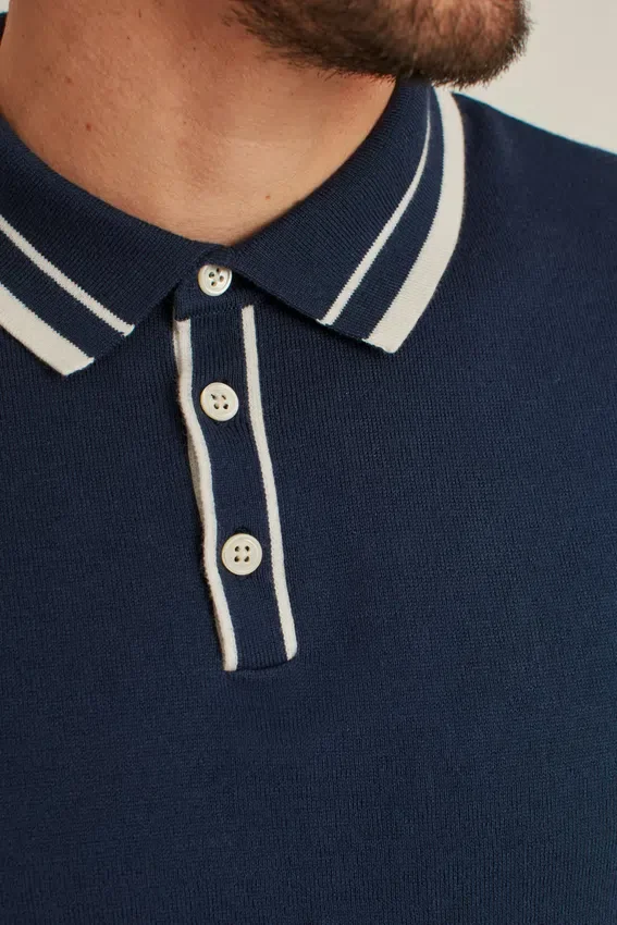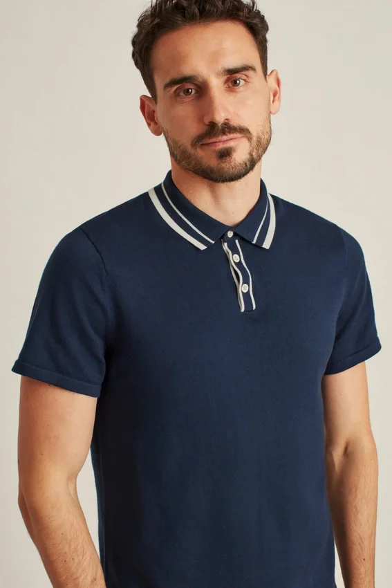 Soft, Lightweight Cotton Yarn with Tipped Polo Collar