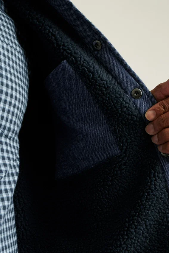 Chest Pockets | on Side Seam Waist Pockets | Interior Chest Pocket | Snap Closure | Teddy Fleece Lined Interior | Stretch Flannel Exterior