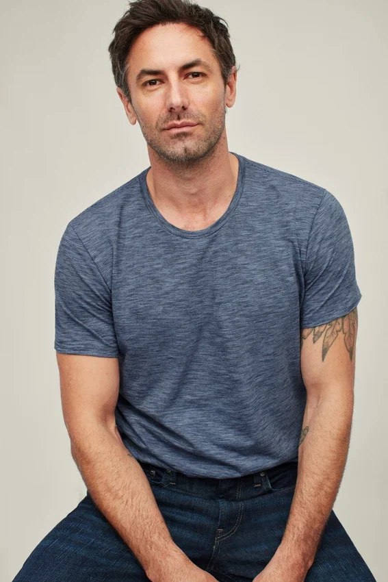 Model is 6’2″ with a 40″ Chest, and is Wearing a M in Slim Fit.