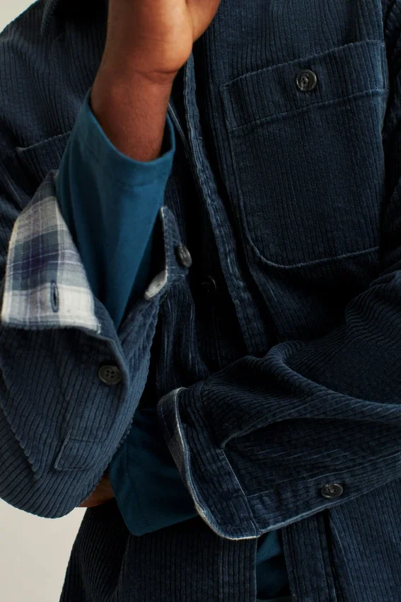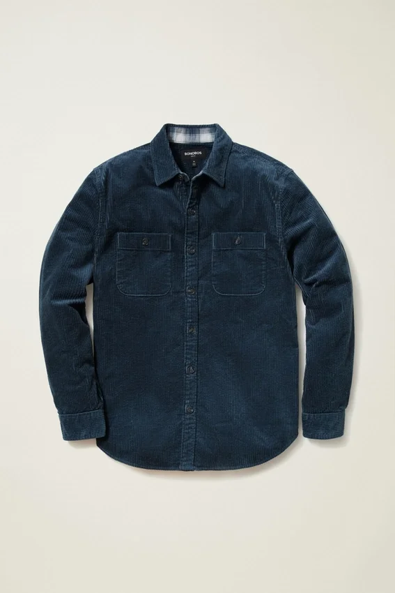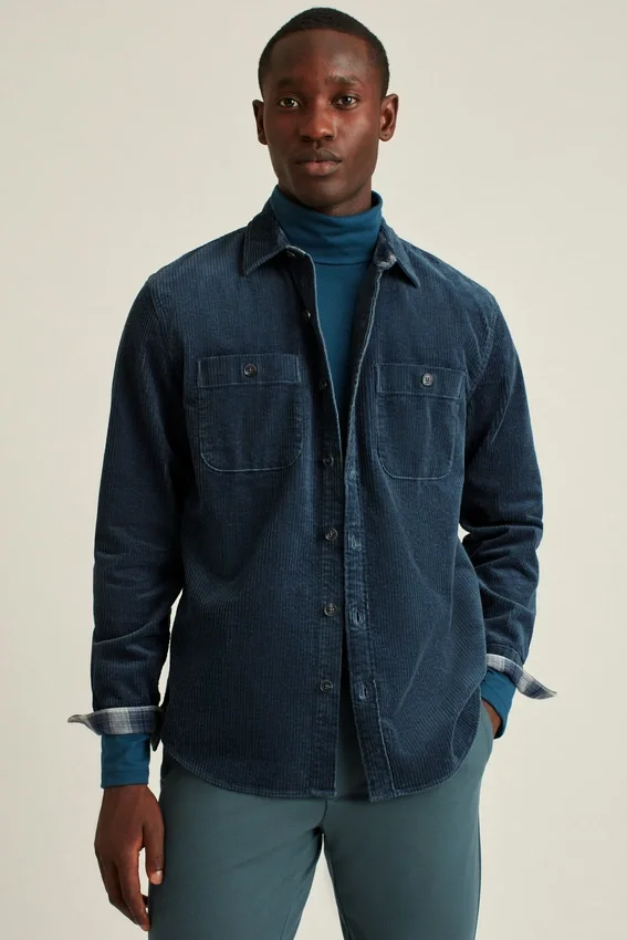 A Shirt/Jacket Hybrid in Soft Corduroy. Flannel at the Cuffs & Collar Adds Extra Style.