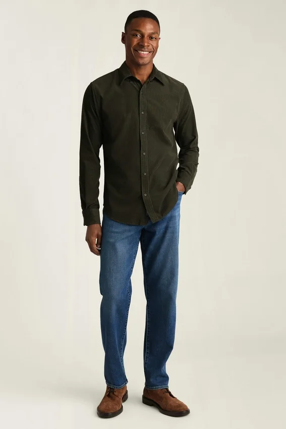 Button-Down Collar | Front Chest Pocket | Soft Stretch Corduroy Fabric