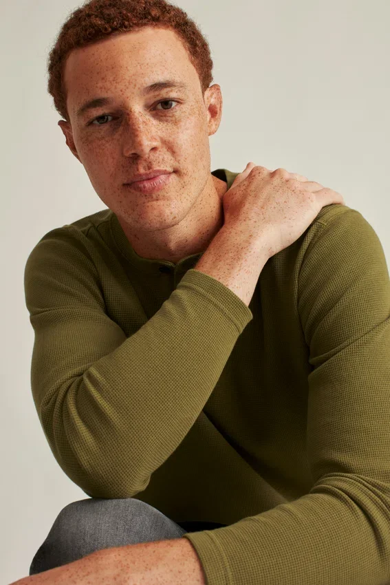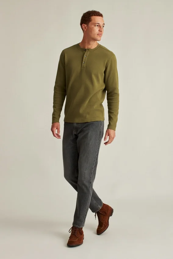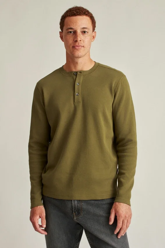 For Moving Through Seasons, This Lightweight Cotton Henley Features Both Texture & a Soft Feel.