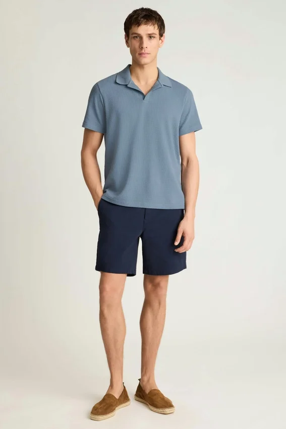 Textured Waffle Fabric with Rib-Knit Johnny Collar