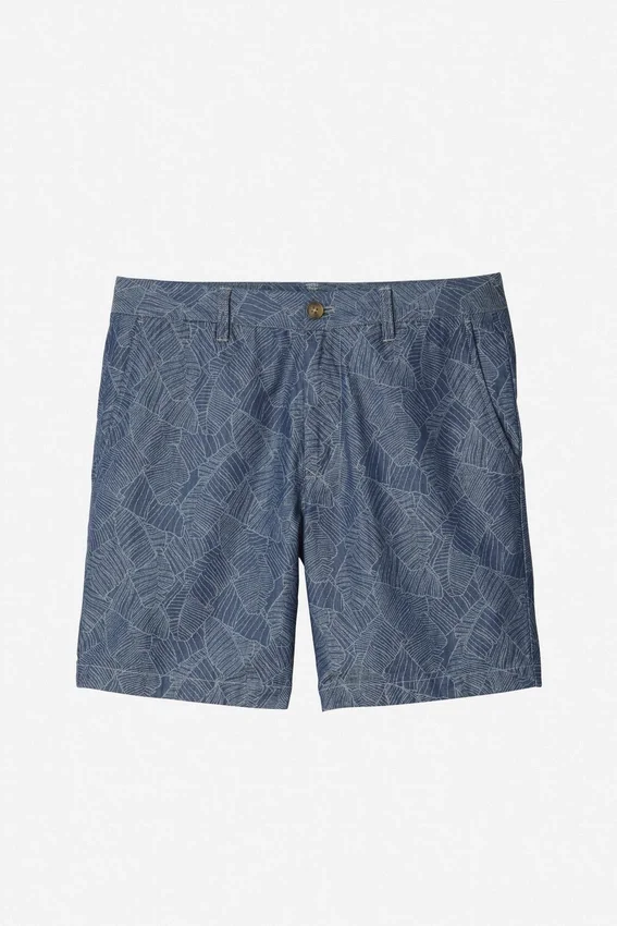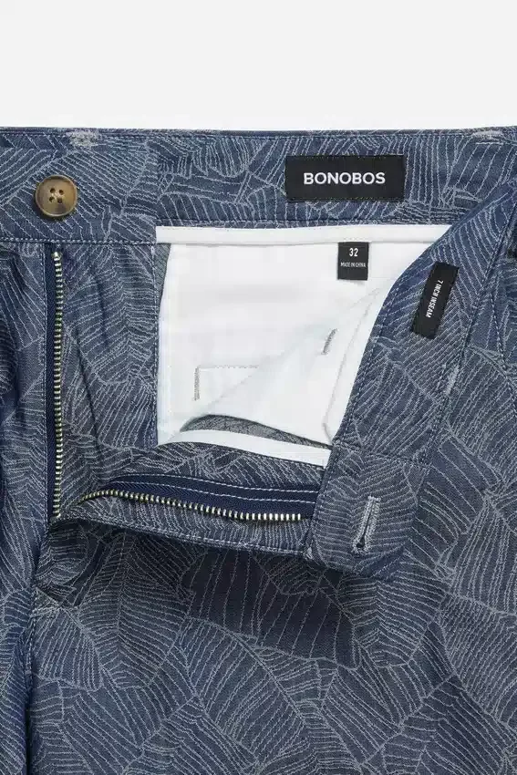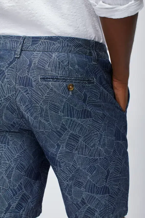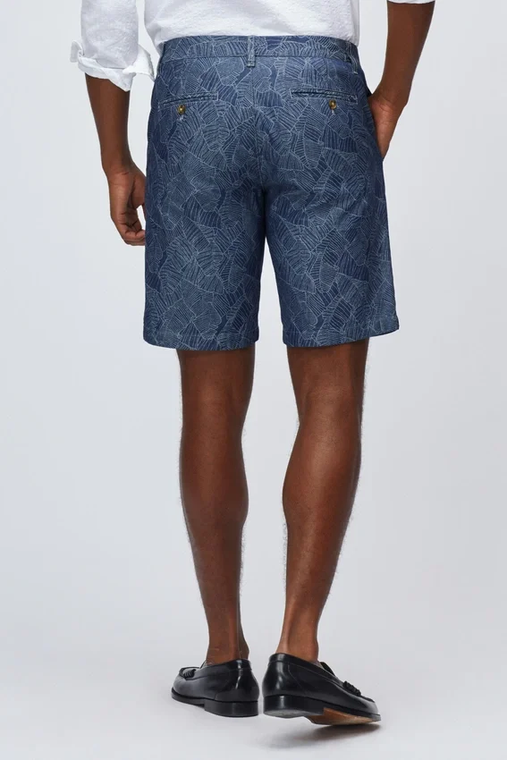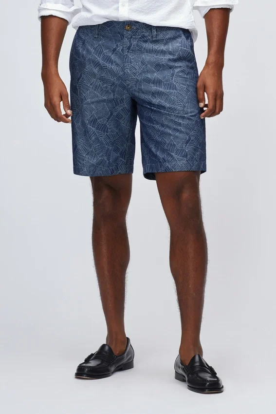 Patterned Stretch Cotton Chino Short | Signature Curved Waistband | Button Closure at Center Front | Back Welt Pockets with Button Closure.