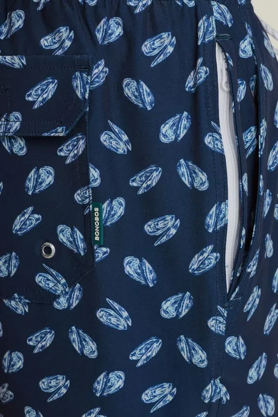 Pop Color Silicone Drawcord | Mesh Pocket Bags | Elasticated Waist for Comfort | Back Pocket with Velcro Closure | Zipper Pocket at Wearer Right Side Seam | Printed Mesh Boxer Brief Liner