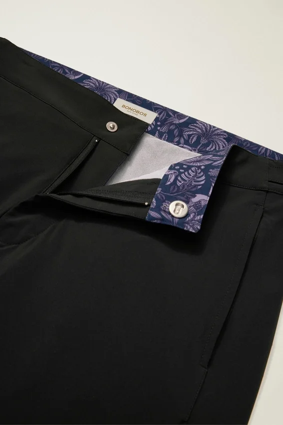 Adjustable Side Tabs | Slide Snap Closure with Functional Fly | Mesh Brief Liner | on Seam Pockets | Zippered Back Pocket | Contrast at Interior Waistband | Pocket Bags & Key Catch