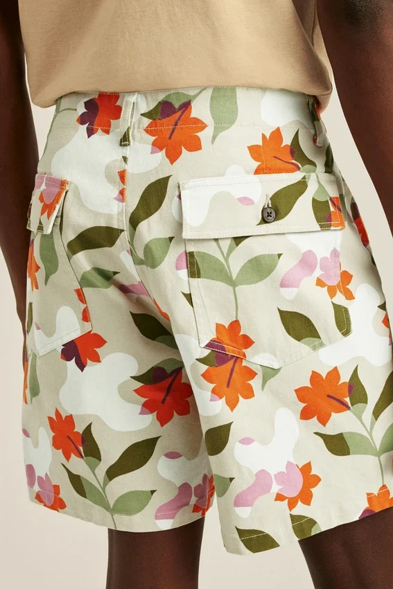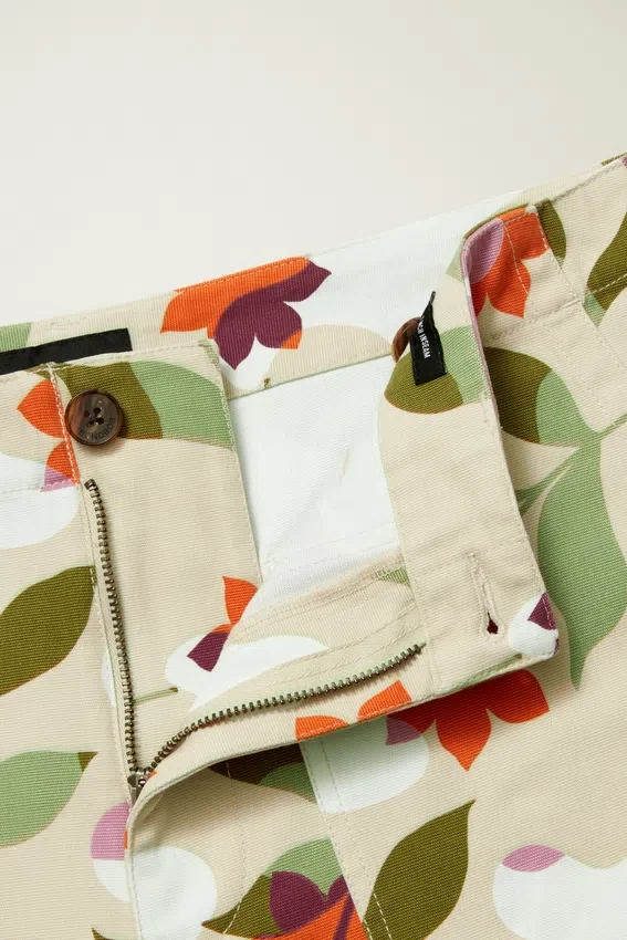Printed Cotton Canvas | Front Patch Pockets | Back Patch Pockets with Flaps | Button Fly Closure