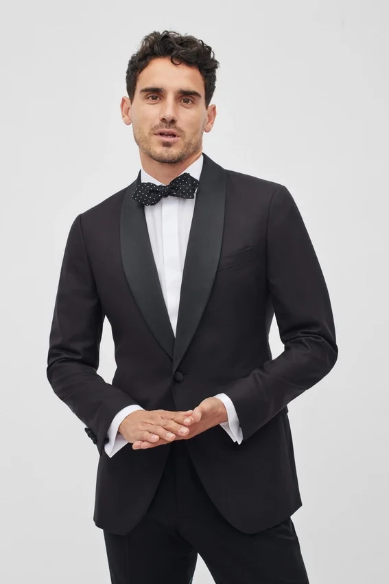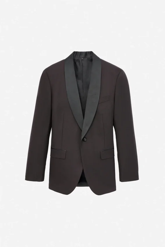 Single Button | Shawl Satin Lapel | Flap Pockets | Fully Lined | Interior Pockets | Felt Undercollar | Double Vent