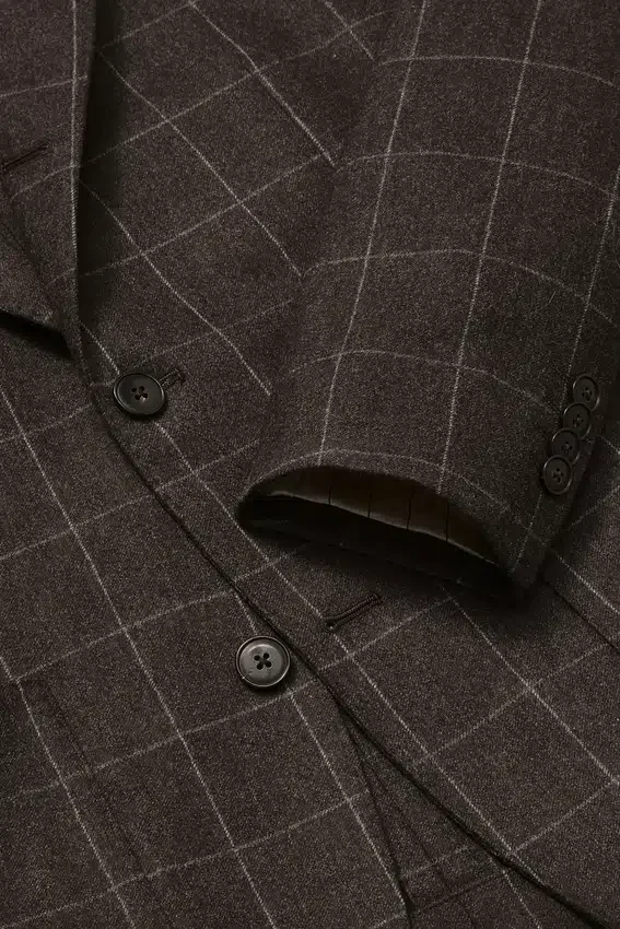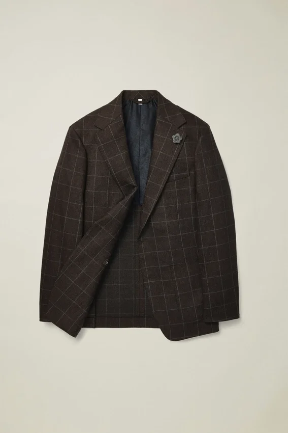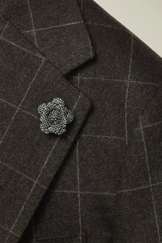 Premium Wool Cashmere Fabric from Italy’s Tollegno Mill | Floral Lapel Pin Composed of Donegal Scrap Fabric | Half-Lined in Custom Jacquard Lining | Bemberg Sleeve Lining | Interior Pockets with Genuine Mother-Of-Pearl Buttons | Pick Stitching Throughout | Genuine Horn Buttons | Non-Functional Buttons at Cuffs | Back Vents
