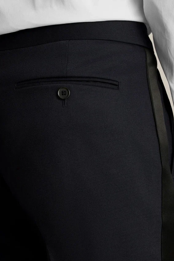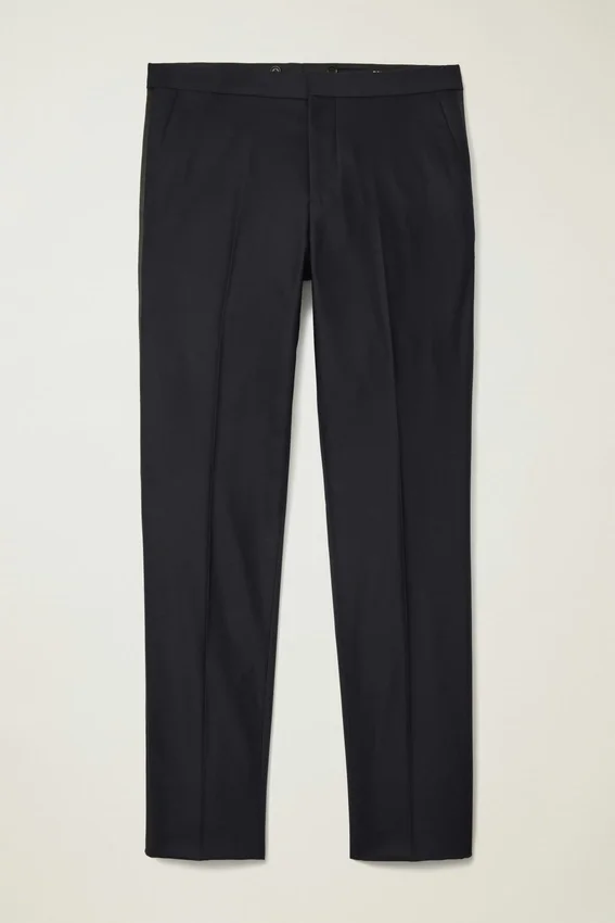 This Tux is Made in a Barethea Stretch Wool from Marzotto, and is Lined at the Front Leg in Premium Bemberg Lining. | Hook and Bar Closure | Suspender Buttons at Interior Waistband | Button-Through Back Pockets | Front Leg Lining