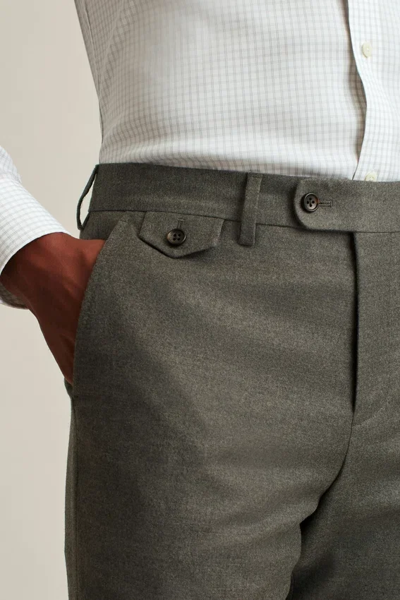 Suit up in the Cooler Months with Our Italian Stretch Suit Pants for Men with Soft, Warm-Handed Brushed Wool. Lightly Constructed for Dressing up or Down.