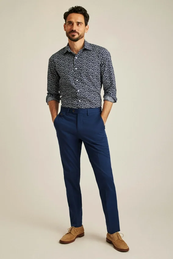 Fabric from Italy | Extended Tab Closure | Ticket Pocket | Slash Pockets | Front Leg Lining | Waistband Curtain