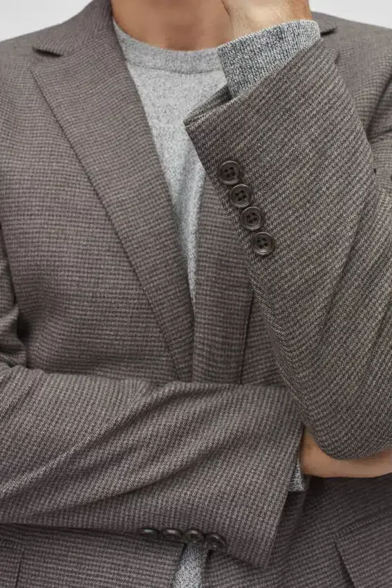Jacket Features Notch Lapel | Flap Pockets | 2 Button Single Breasted | Fully Lined Interior | Interior Welt Pockets | Non Functional Buttons at Cuff | Felt at Undercollar | Double Vent | Light Construction
