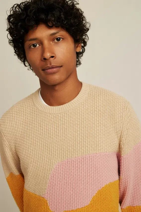 Soft and Cozy Blended Yarn with Original Abstract Shapes Artwork and Allover Texture Stitch
