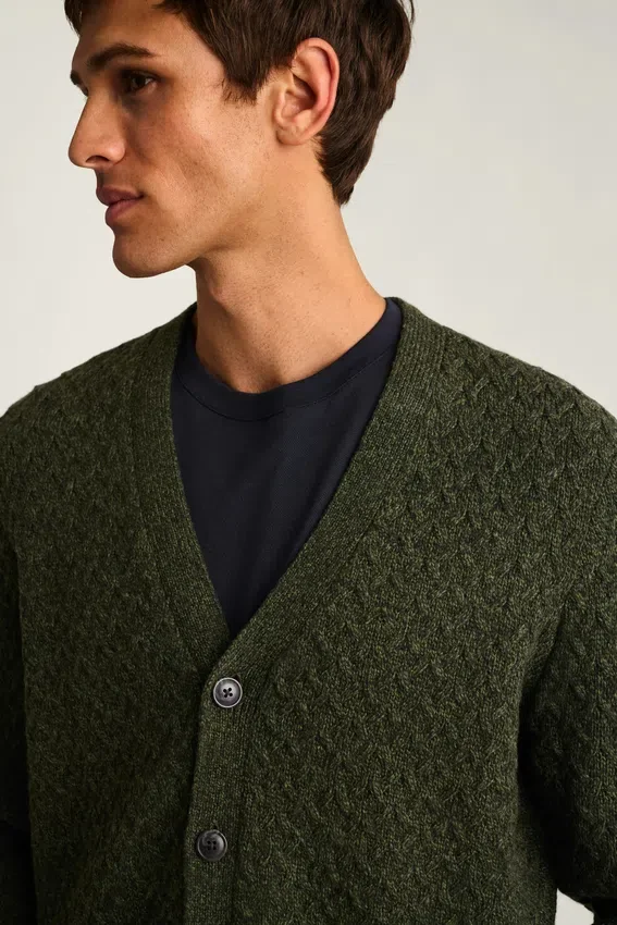 The Merino Blend Cable Cardigan by Bonobos Combines Cable-Knit Heritage with Modern Style. A Men’s Cable Knit Cardigan Built for Comfort in Changing Forecasts.