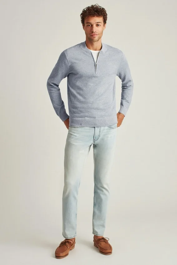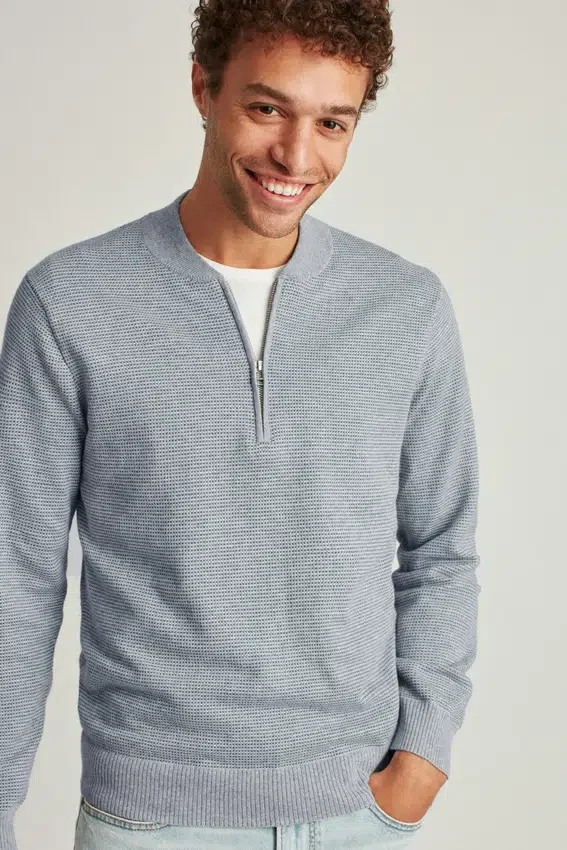 Breathable Yarn with Light Feel | Half-Zip Closure | Multicolor Birds-Eye Stitch | Baseball Collar