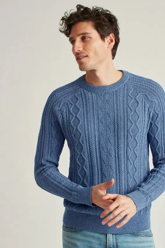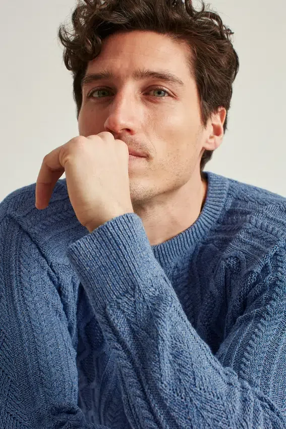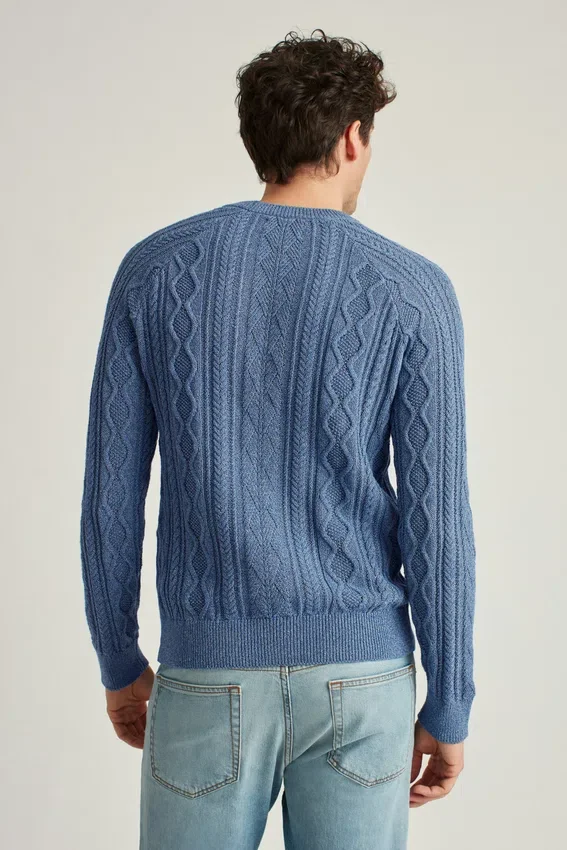 Soft Yarn in Marled Effect with Engineered Cable-Knit Detail