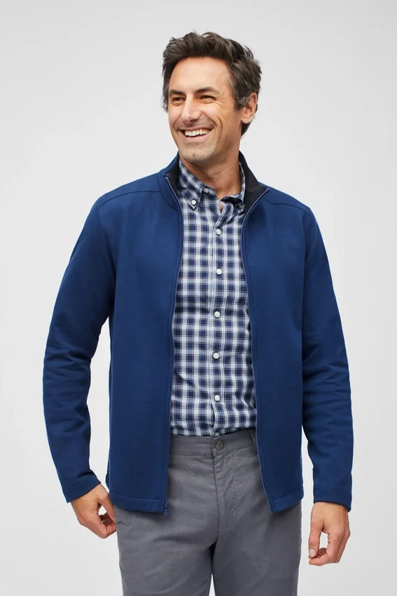 Clean & Refined Double-Face Fabric | Contrast Interior Color | Rubberized Zipper with Contrast Color Interior Zipper Tape | Side Pockets with Jersey Pocket Bags