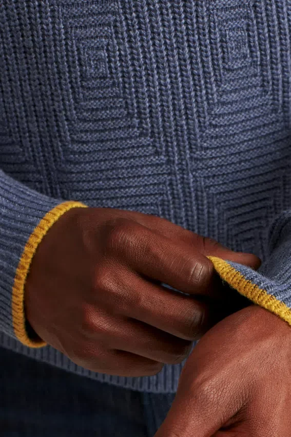 Soft and Cozy Blended Yarn in Allover Diamond Pattern Texture Stitch | Tipping at Cuffs