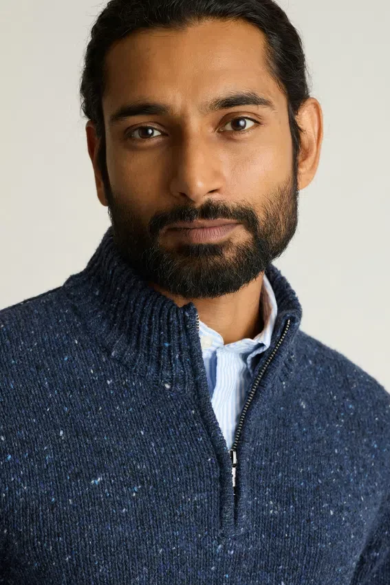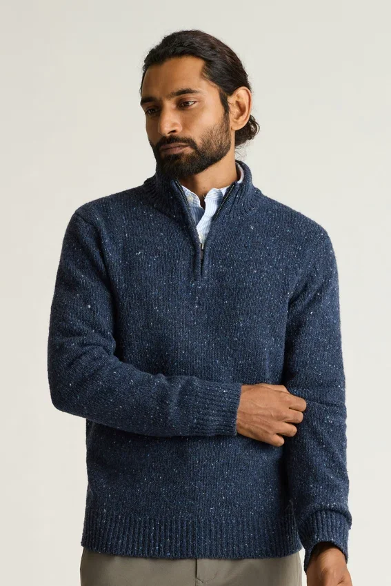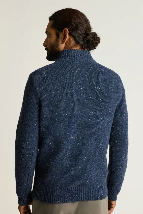 Soft and Warm Merino Blend Donegal Yarn | Jersey Stitch | Heavyweight | Zipper Closure at Neck
