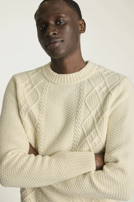Indulge in the Luxury of Our Extrafine Merino Wool Cable Sweater. A Perfect Blend of Softness and Warmth, Ideal for Any Season.