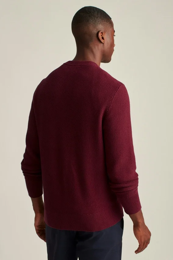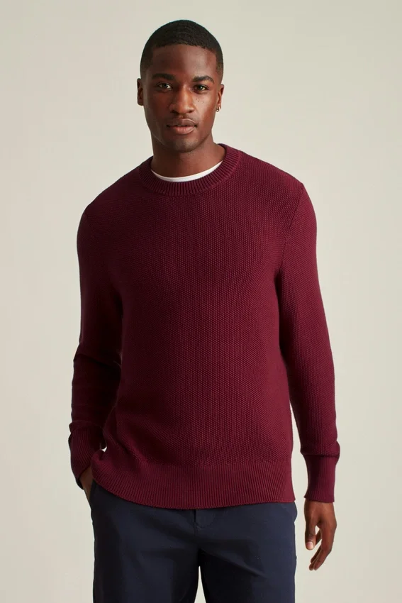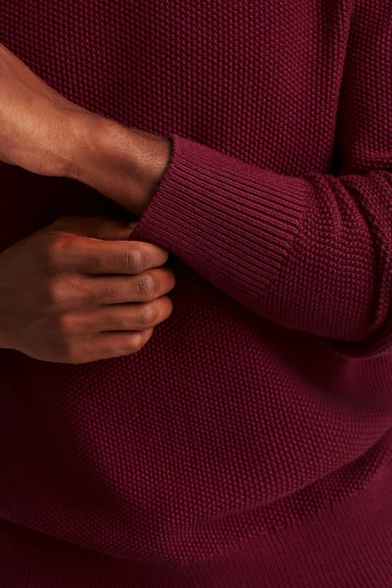 Soft and Breathable Cotton Yarn with Allover Texture Stitch | Midweight | Extra Tall 1X1 Rib Cuffs