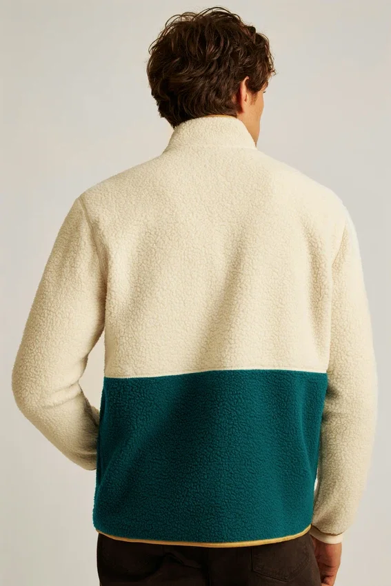 Warm and Cozy High-Pile Fleece with Color Blocking. Zipper Closure, Fully Lined. Contrast Color Nylon Chest Pocket with Zipper Closure. Welt Hip Pockets with Zipper Closure.