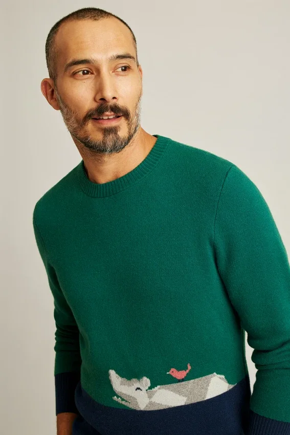 Soft and Cozy Blended Yarn with Original Artwork | Contrast Color at Interior Back Neck