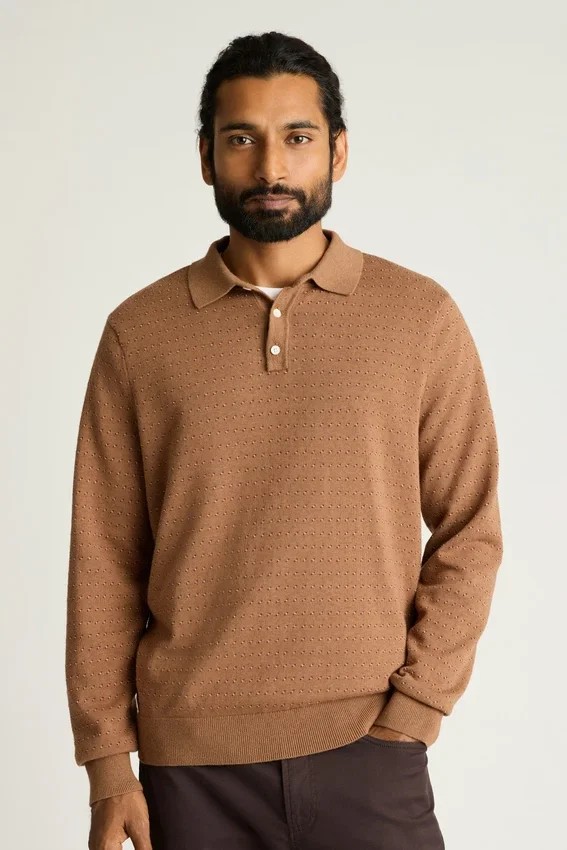 Our Best-Selling Hudson Sweater Polo with Long Sleeves. Crafted for Cooler Seasons, It’s a Must-Have for Your Wardrobe.