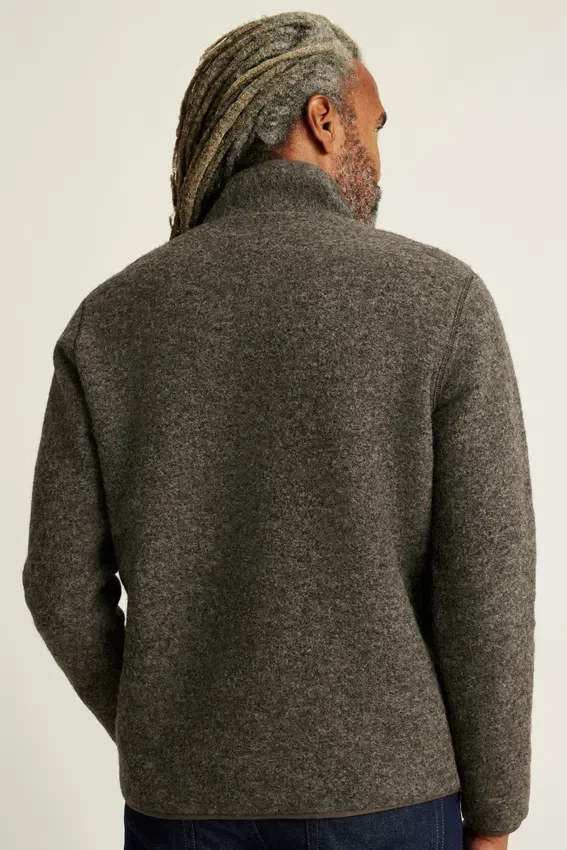 Undyed, High-Pile Wool Fleece | Italian Milled | Fully Lined in Soft Cotton Jersey | Funnel Neck with Zipper Closure