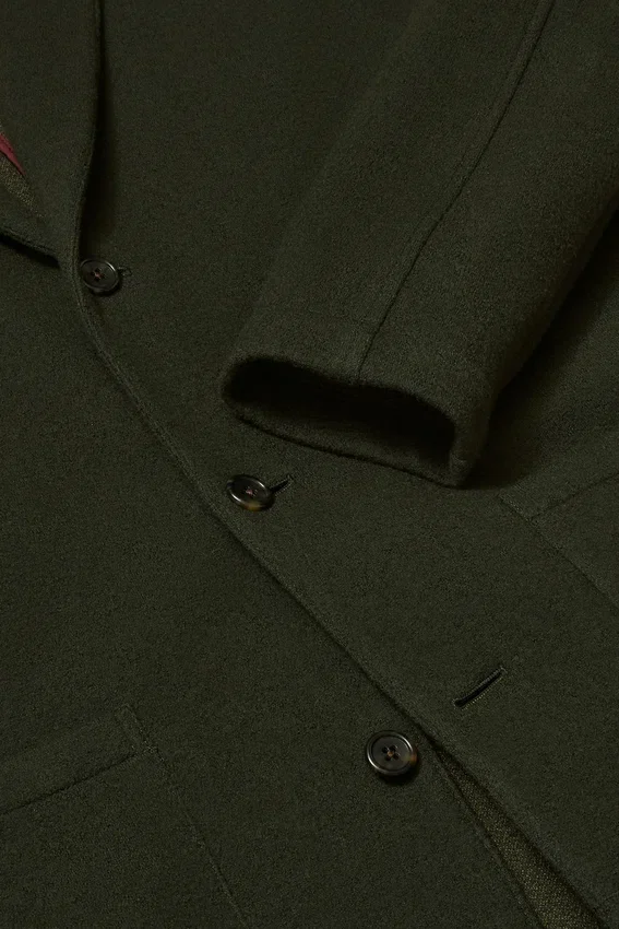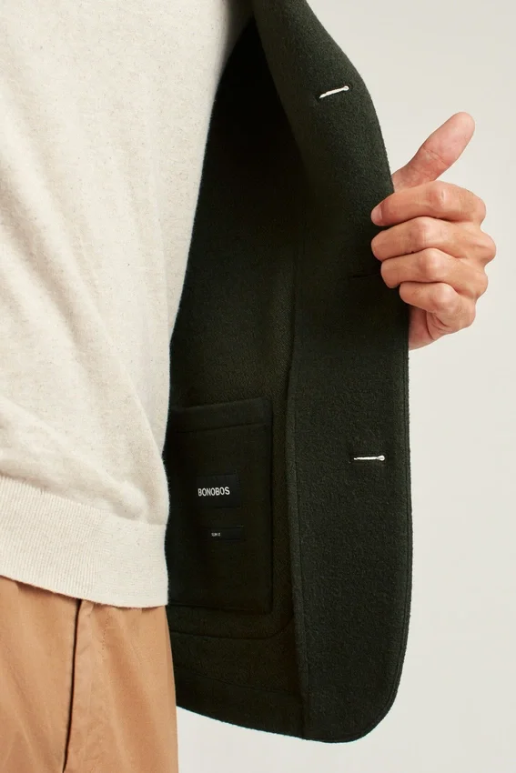 Single Breasted | Notch Lapel | Patch Pockets at Waist | Unconstructed Interior with Binding at Seams | Interior Patch Pocket | Soft Tailored Construction | Interior Locker Loop