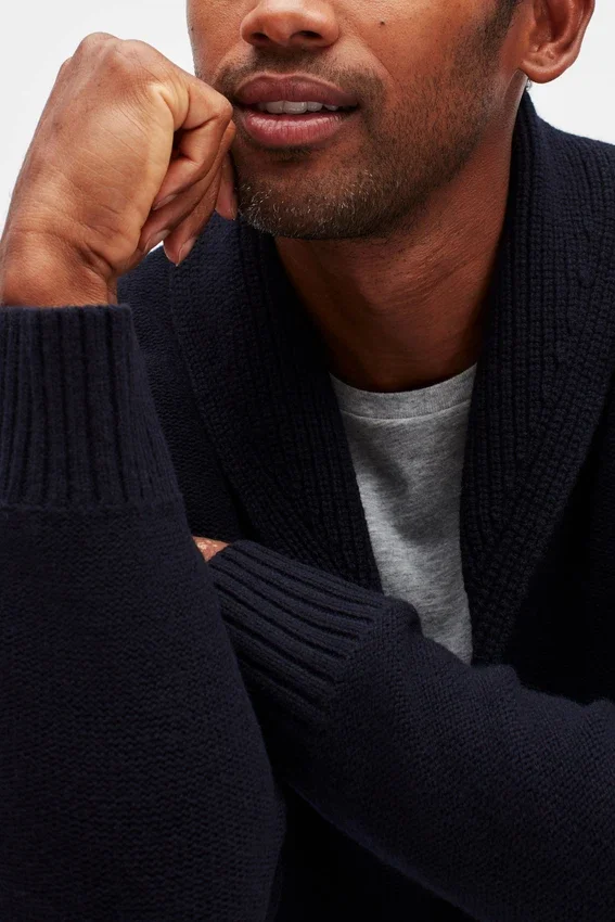 Luxurious Soft Merino Wool in Cardigan with Traditional Trims for a Comfortable and Cozy Wear