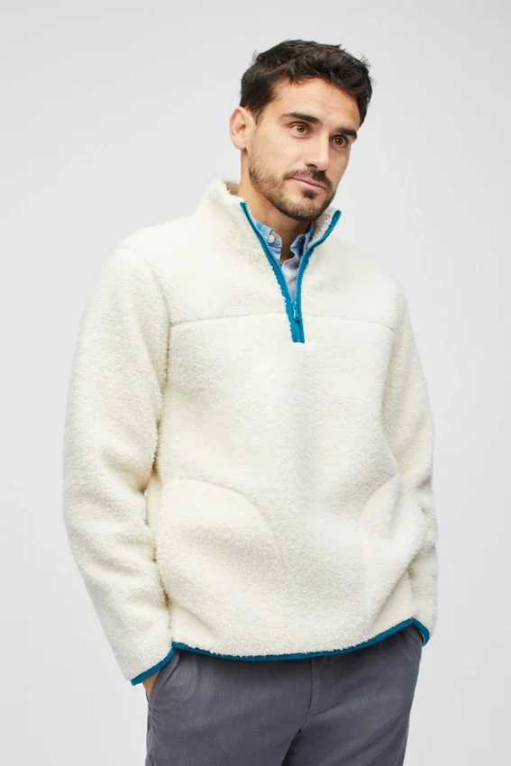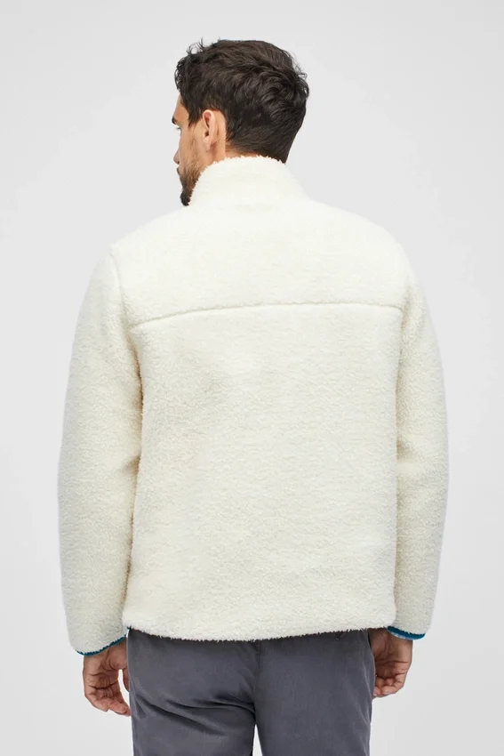 Soft and Plush Sherpa Fabric with Woven Cotton Lining | Contrast Woven Trims with Plastic Zipper