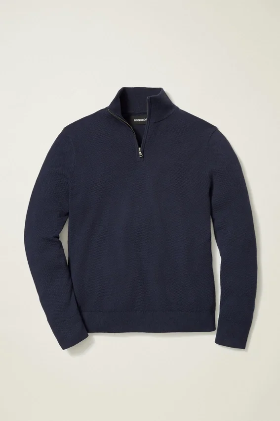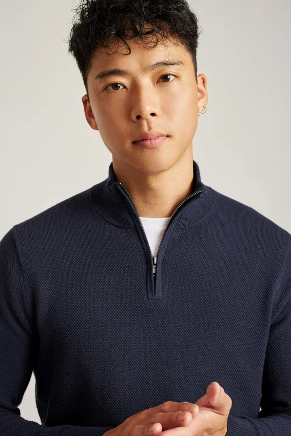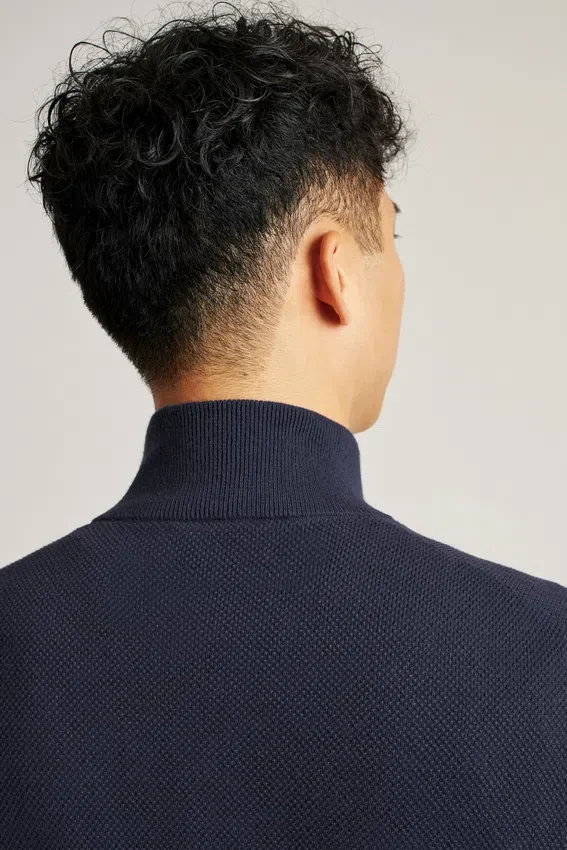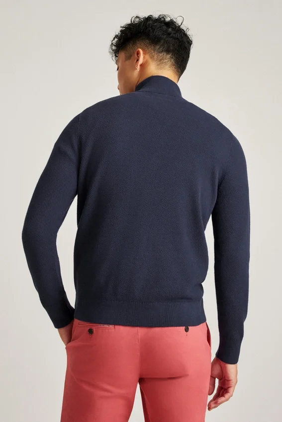 Cooling Cotton Blend | Allover Texture Stitch | Funnel Neck with Zipper Closure | Rib Trims