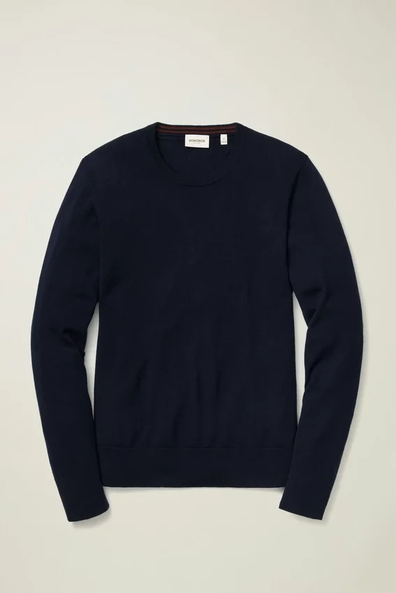 Lightweight Merino Wool | Jersey Body | Smaller, Refined 1X1 Rib Neck | Taller 1X1 Cuff and Hem | Hidden Contrast Color Stripe at Inside Neck Trim