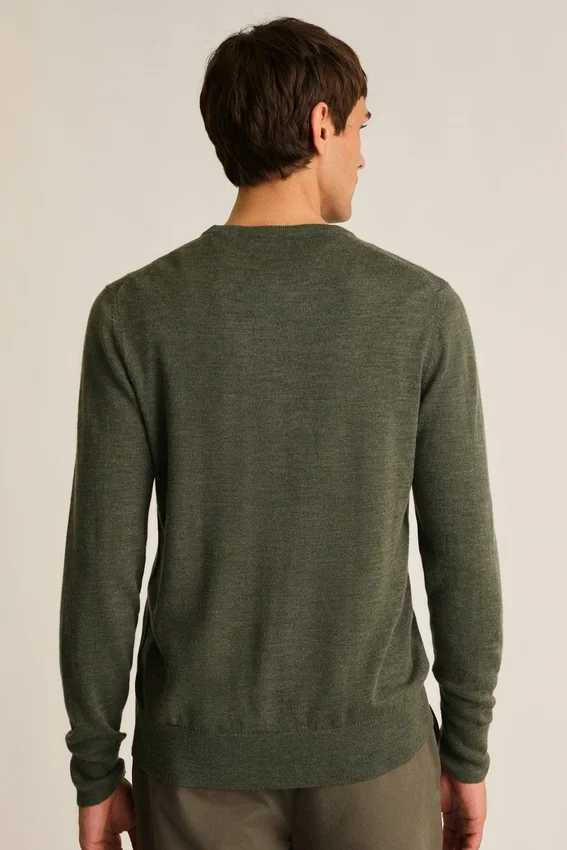 Lightweight Merino Wool | Jersey Body | Smaller, Refined 1X1 Rib Neck | Taller 1X1 Cuff and Hem | Hidden Contrast Color Stripe at Inside Neck Trim