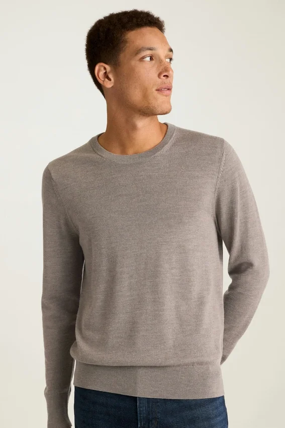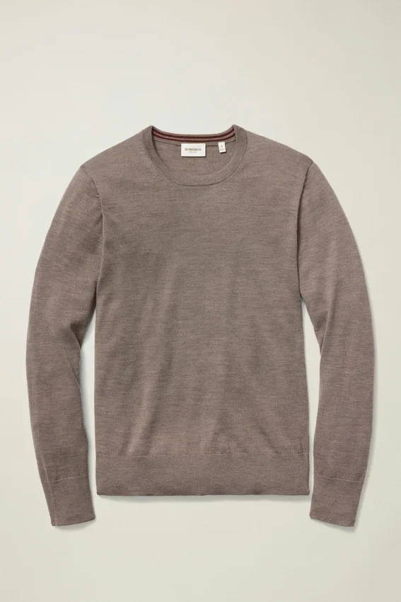 Lightweight Merino Wool | Jersey Body | Smaller, Refined 1X1 Rib Neck | Taller 1X1 Cuff and Hem | Hidden Contrast Color Stripe at Inside Neck Trim