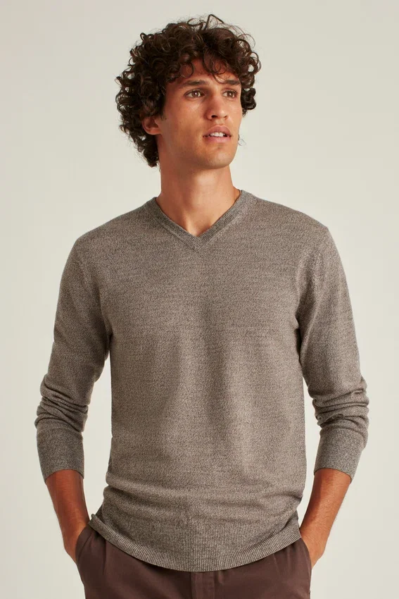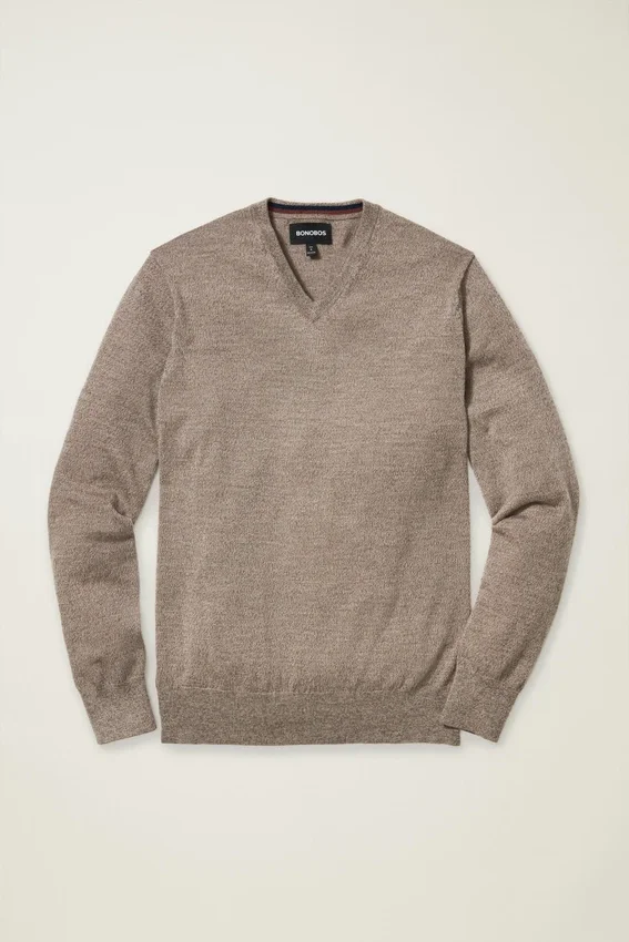 A Classy and Versatile V-Neck Sweater Made for Any Occasion! Made from 100% Extra-Fine Merino Wool and Features Sleek Contrast Tipping Inside the Neckline. Free Shipping