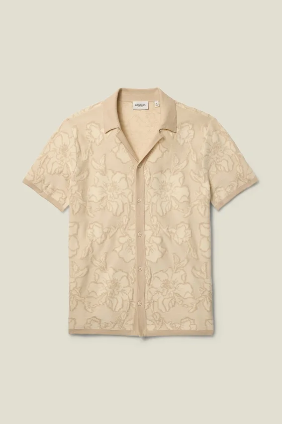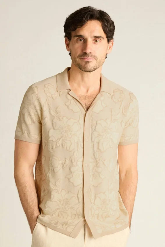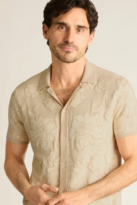 Soft and Breathable Cotton Yarn with Allover Texture Stitch Pattern for Sophisticated Retro Vibes. Can Be Worn Closed as a Shirt, or Open as a Layering Piece