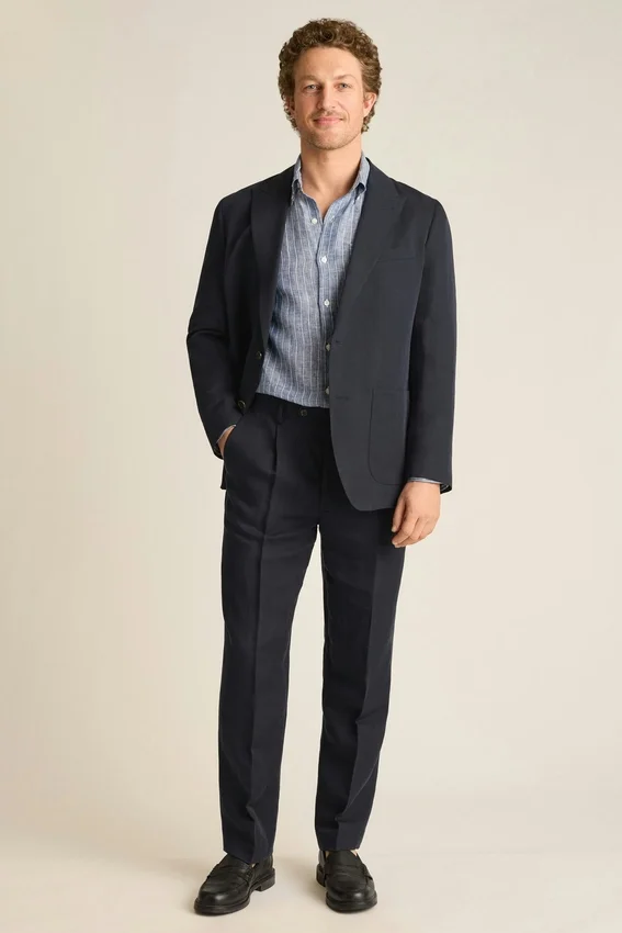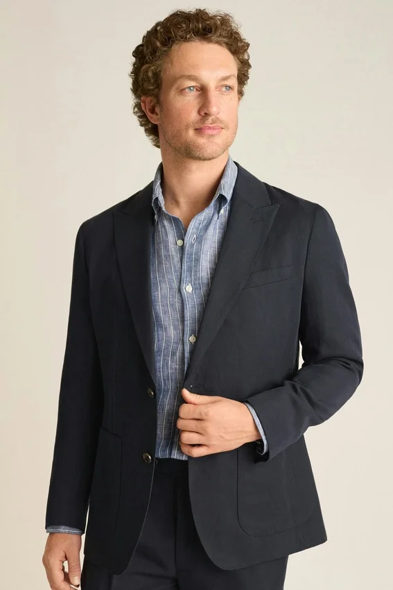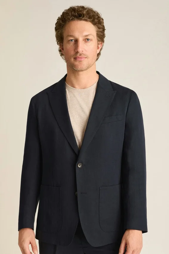 The Cooper Italian Linen Tencel Blazer by Bonobos Features a Smooth Drape and Peak Lapels. A Men’s Relaxed Fit Blazer Designed for Effortless Elegance with Italian-Inspired Ease.