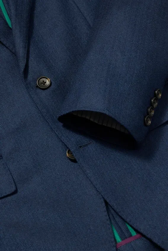 Unlined Interior with Binding at Seams | Non Functional Buttons at Cuff | Sleeve Lining | Double Vent | Interior Pockets and Locker Loop