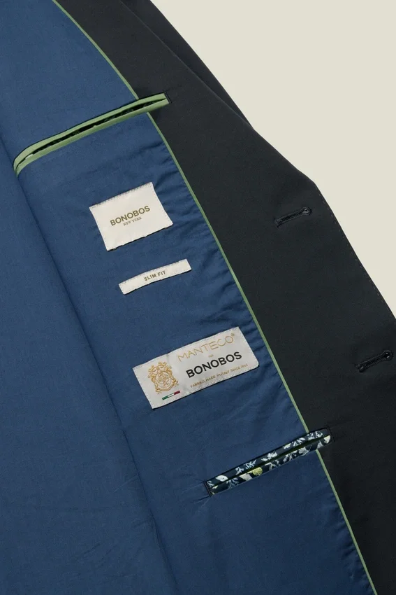 Fabric from Manteco | Half Canvassed Construction | Notch Lapel | 2 Buttons at Front | Double Vent | Non-Functioning Button Cuffs for Easy Sleeve Tailoring | Fully Lined Interior | Custom Bonobos Flower Embroidery at Interior | Custom Bonobos Print at Interior