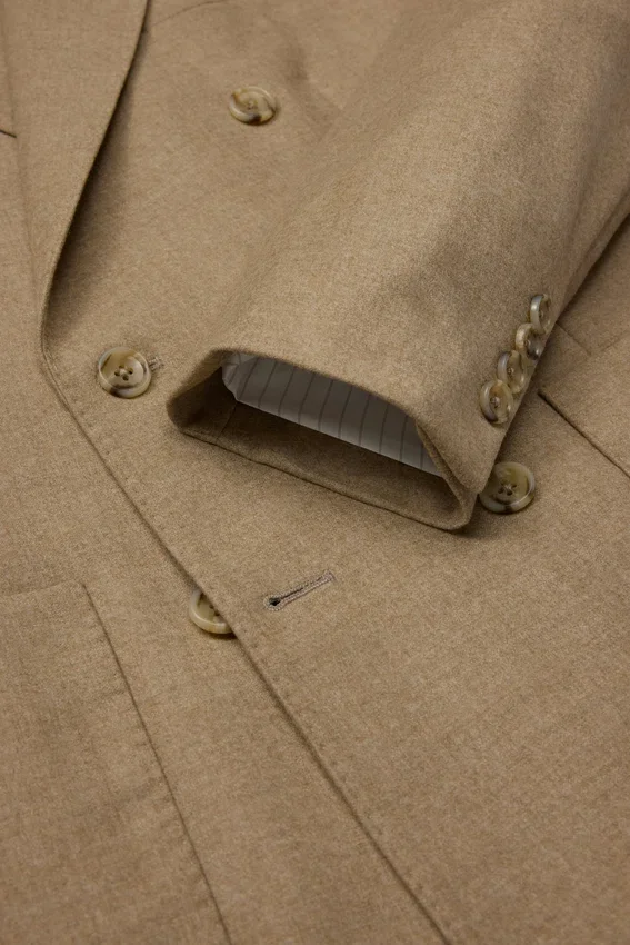 Fabric from Marzotto | Half Canvased Construction | Pick Stitching at Collar, Lapel and Pocket Flaps| Non Functional Buttons at Cuff | Interior Pockets | Fully Lined Interior | Sleeve Lining | Back Vents