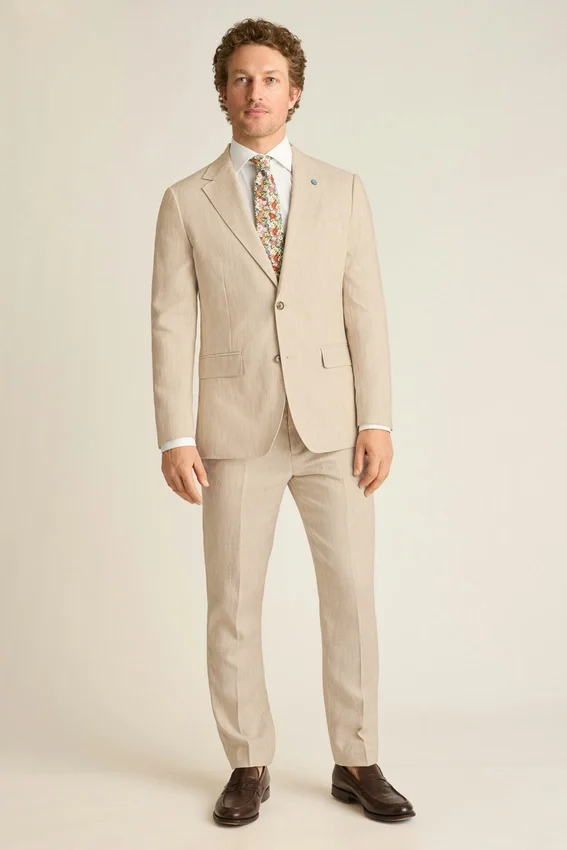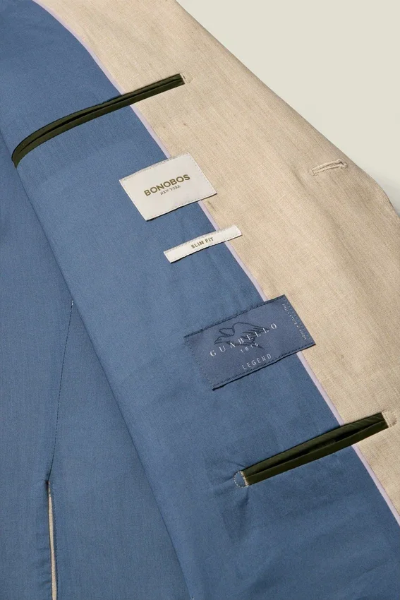Fabric from Guabello | Partially Canvassed Construction | Notch Lapel | 2 Buttons at Front | Double Vent | Non-Functioning Button Cuffs for Easy Sleeve Tailoring | Fully Lined Interior | Custom Bonobos Flower Embroidery at Interior | Custom Bonobos Print at Interior | Lapel Pin is Removable