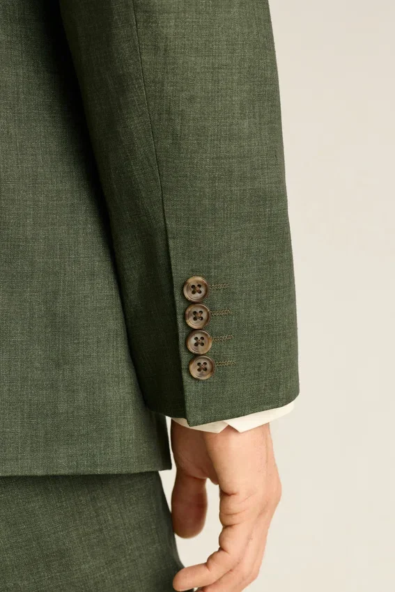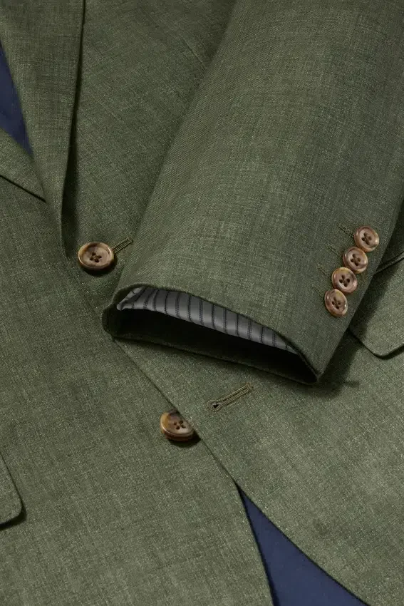 Fabric from Guabello | Partially Canvassed Construction | Notch Lapel | 2 Buttons at Front | Double Vent | Non-Functioning Button Cuffs for Easy Sleeve Tailoring | Fully Lined Interior | Custom Bonobos Flower Embroidery at Interior | Custom Bonobos Print at Interior | Lapel Pin is Removable