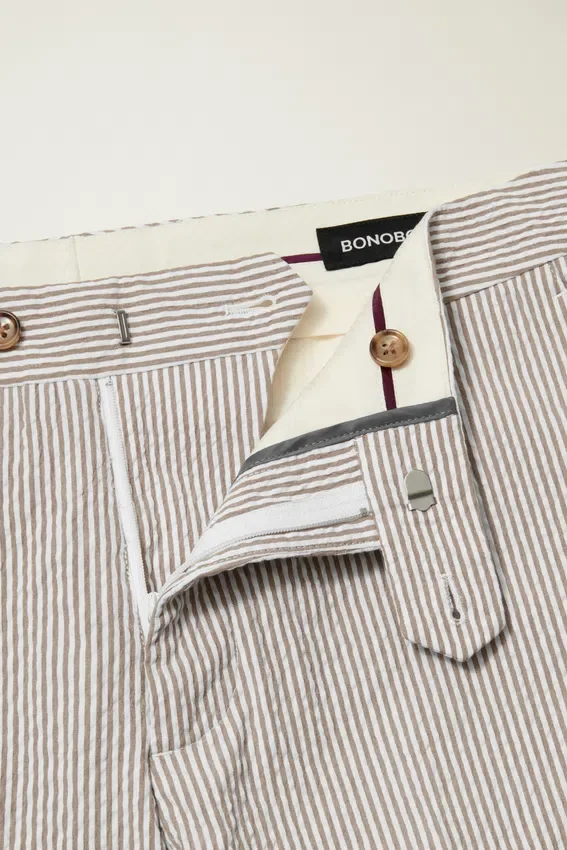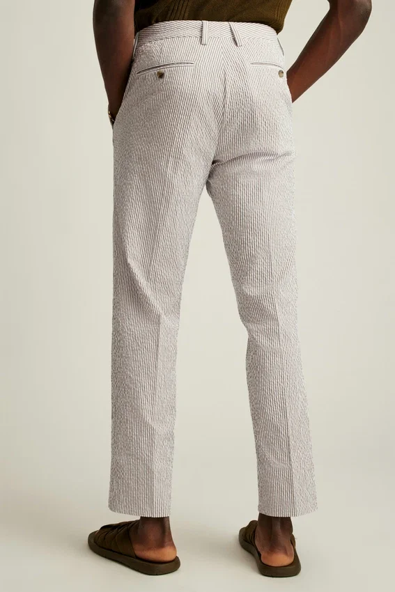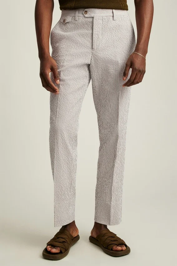 A Cotton Dress Pant of Lightweight Seersucker, Ready to Add Charm to Any Warm-Weather Affair.