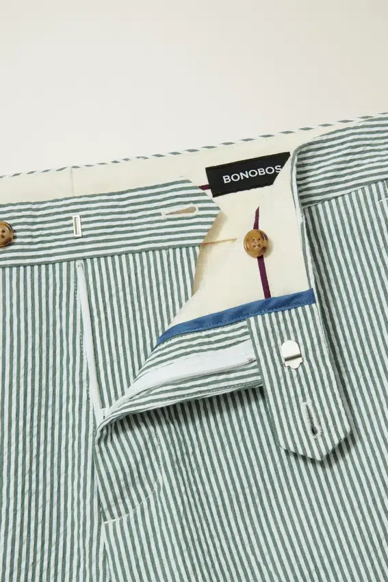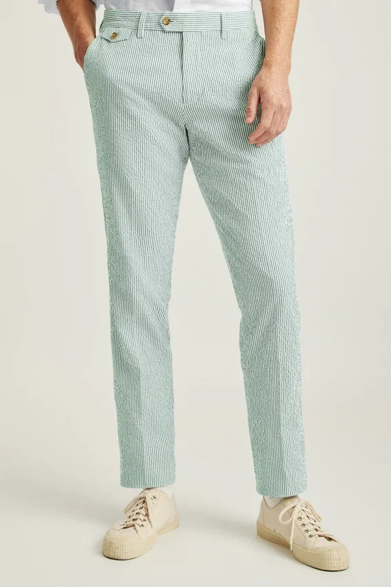 A Cotton Dress Pant of Lightweight Seersucker, Ready to Add Charm to Any Warm-Weather Affair.