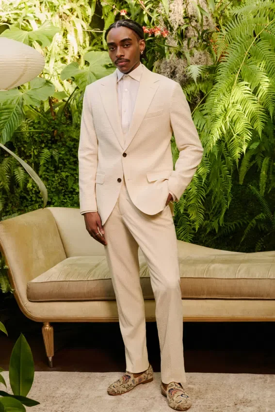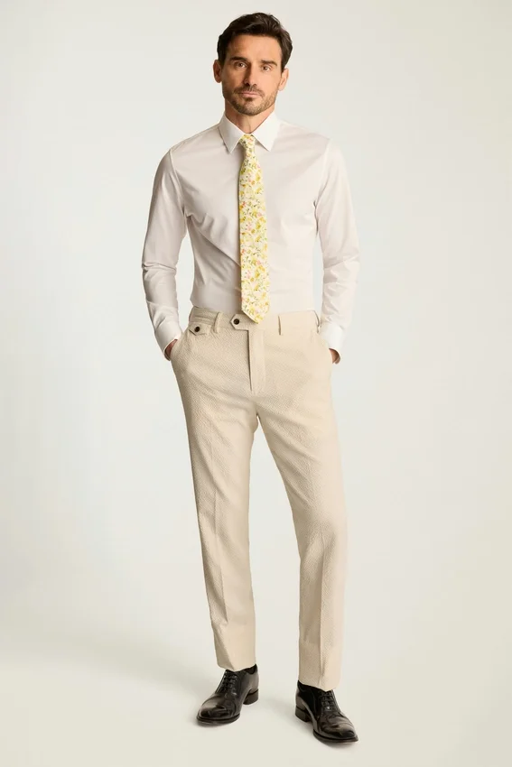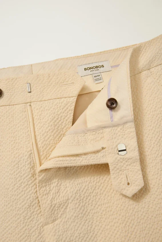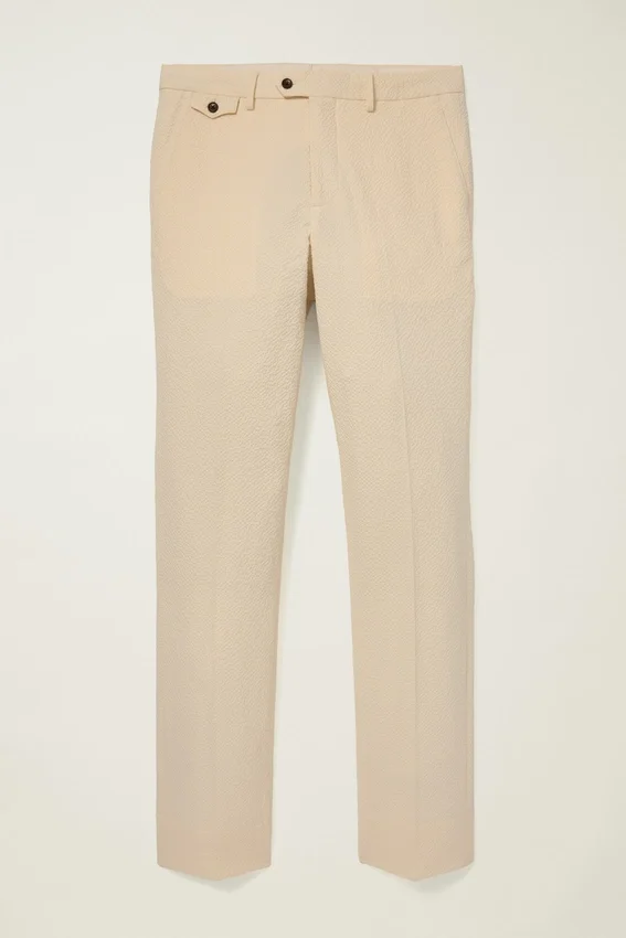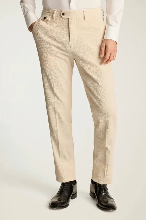 A Cotton Dress Pant of Lightweight Seersucker, Ready to Add Charm to Any Warm-Weather Affair.
